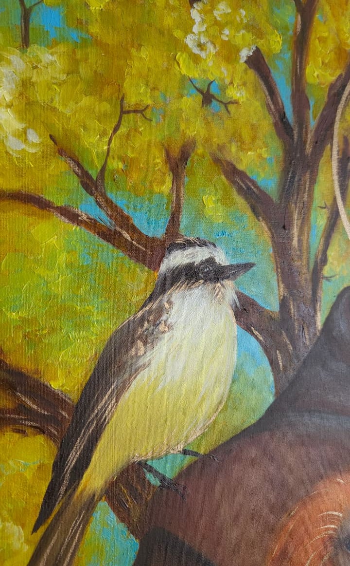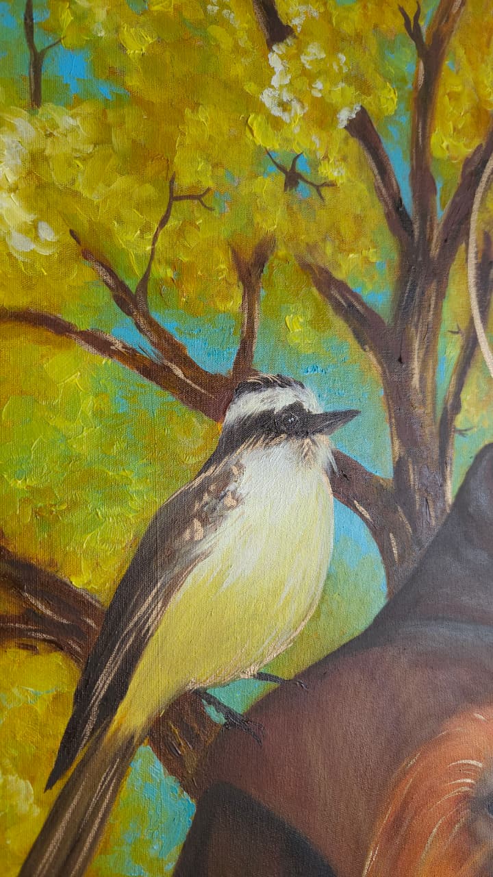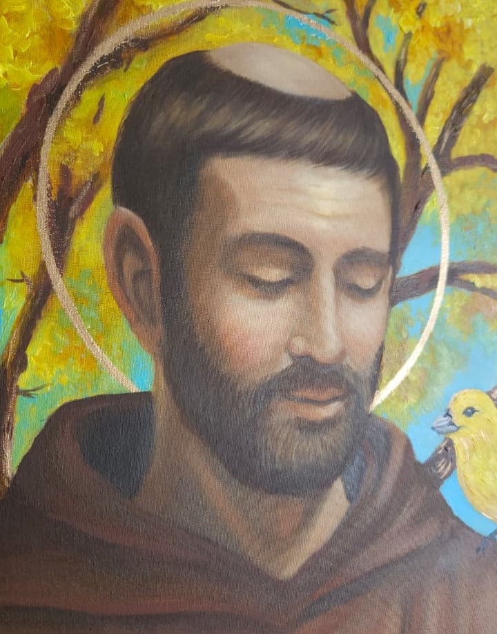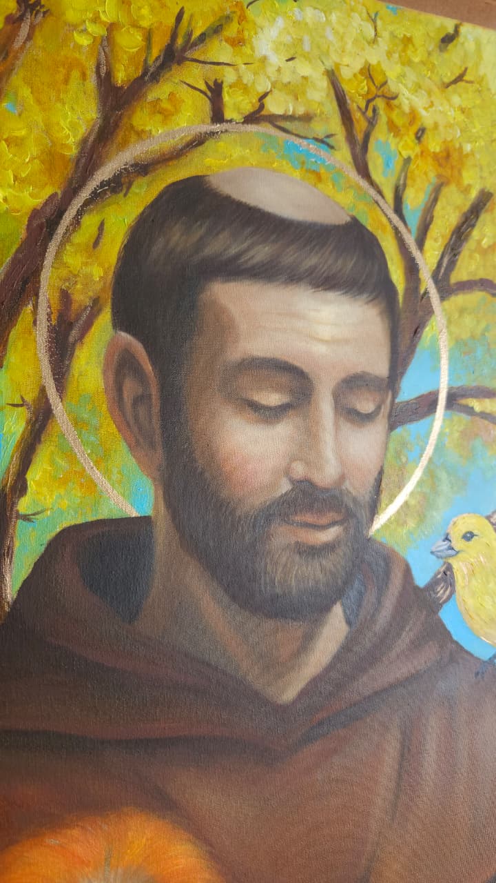 Aqui, o milagre não se revela em feitos sobrenaturais. O verdadeiro milagre é reconhecer a vida como sagrada, voltando o olhar para a terra, para as pequenas criaturas, extraordinárias e vulneráveis. As cores vibram como se a natureza respirasse dentro da tela. Cada traço celebra a inocência, a vulnerabilidade e a presença do divino em todas as criaturas. Esta obra é um chamado à ternura e ao cuidado, à lembrança de que, ao estendermos a mão a um animal, tocamos também a face silenciosa do Cristo presente na criação. Que Sob o Olhar de Francisco inspire a preservação da vida e nos lembre, com doçura e verdade, que amar a natureza é também amar a Deus.