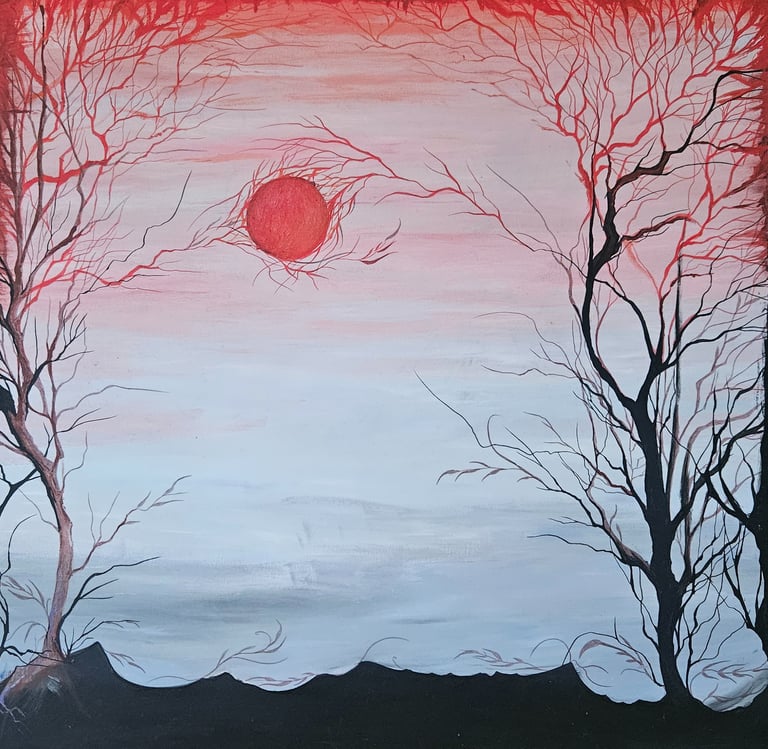 "Raízes solares", 2025 | acrílico sobre painel, 50 x 70cm
